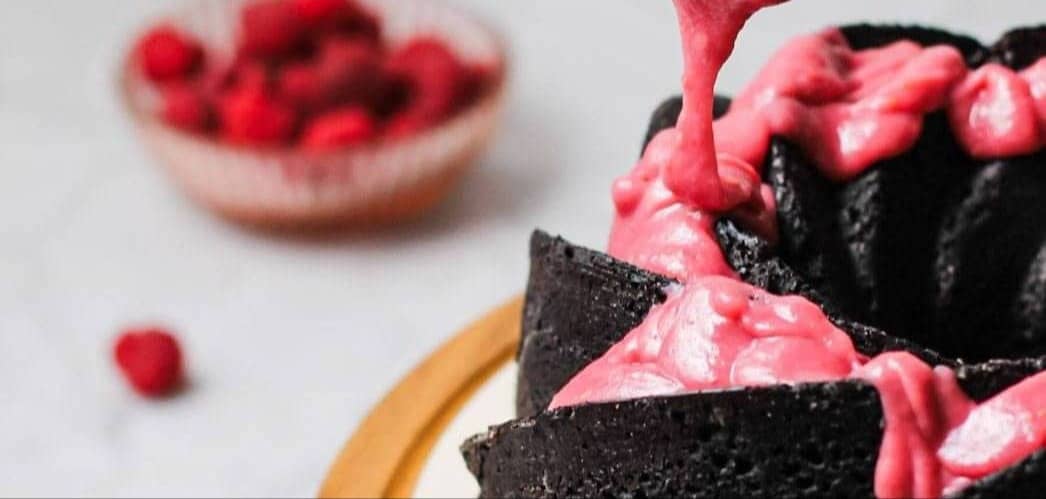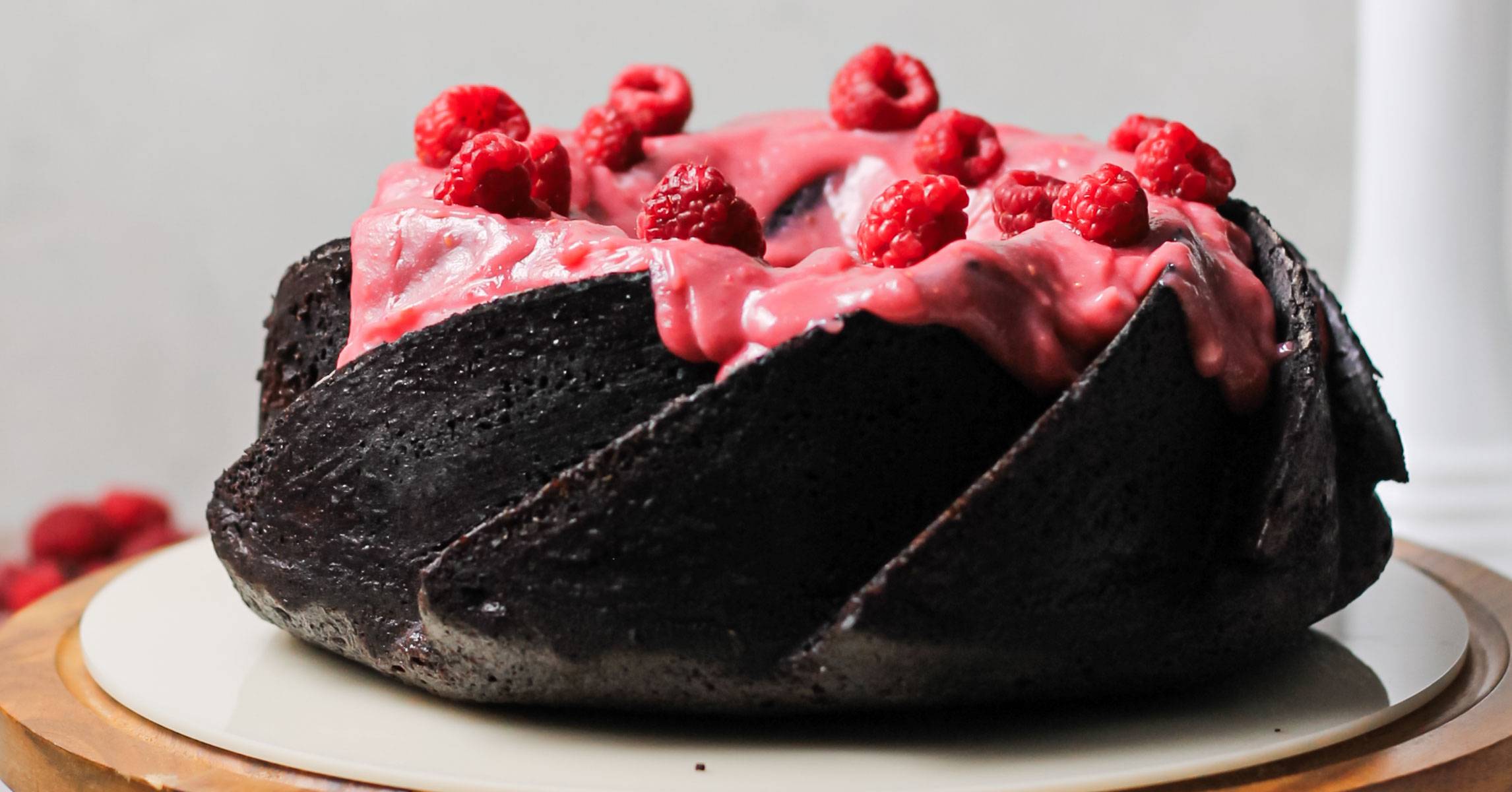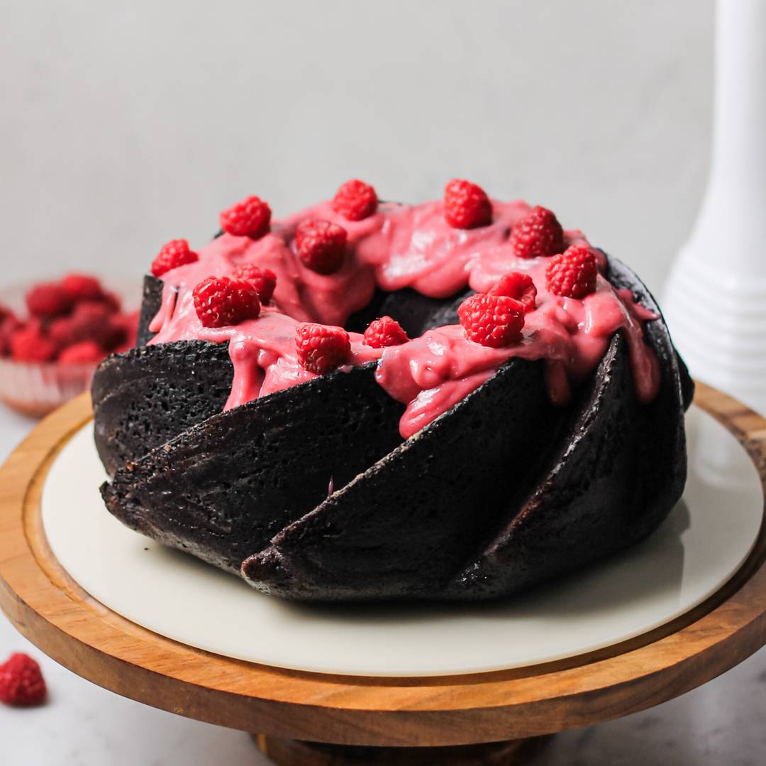 The best part? You don’t need a mixer to make any of it. The chocolate cake batter comes together with a bowl and whisk, and the same is true of the deliciously sweet, slightly tart raspberry glaze on top of this rich, chocolatey Bundt.